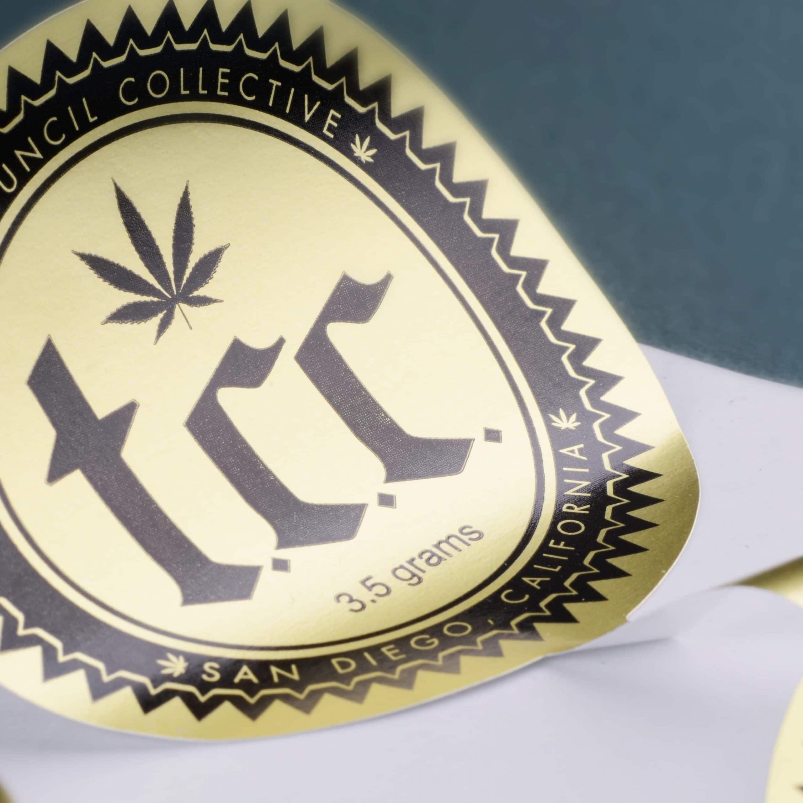Printed on an HP Indigo digital press, your custom cannabis labels will have the visual premium of true gradients, inks that don’t run, vibrant colors, and perfect registration.